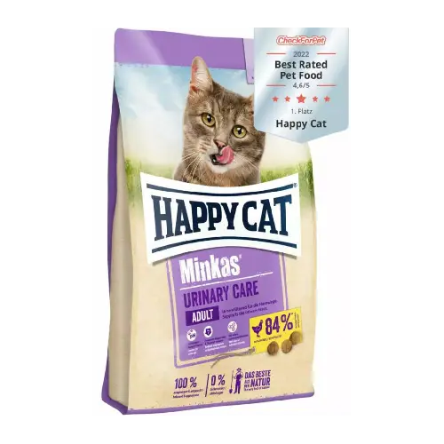 Happy Cat Minkas Urinary Care with Poultry is a gentle and balanced complete feed for adult cats. High quality, easily digested protein and a reduced magnesium and phosphorus content can reduce the urine pH and thus relieve the strain on the urinary tract as a preventive measure.