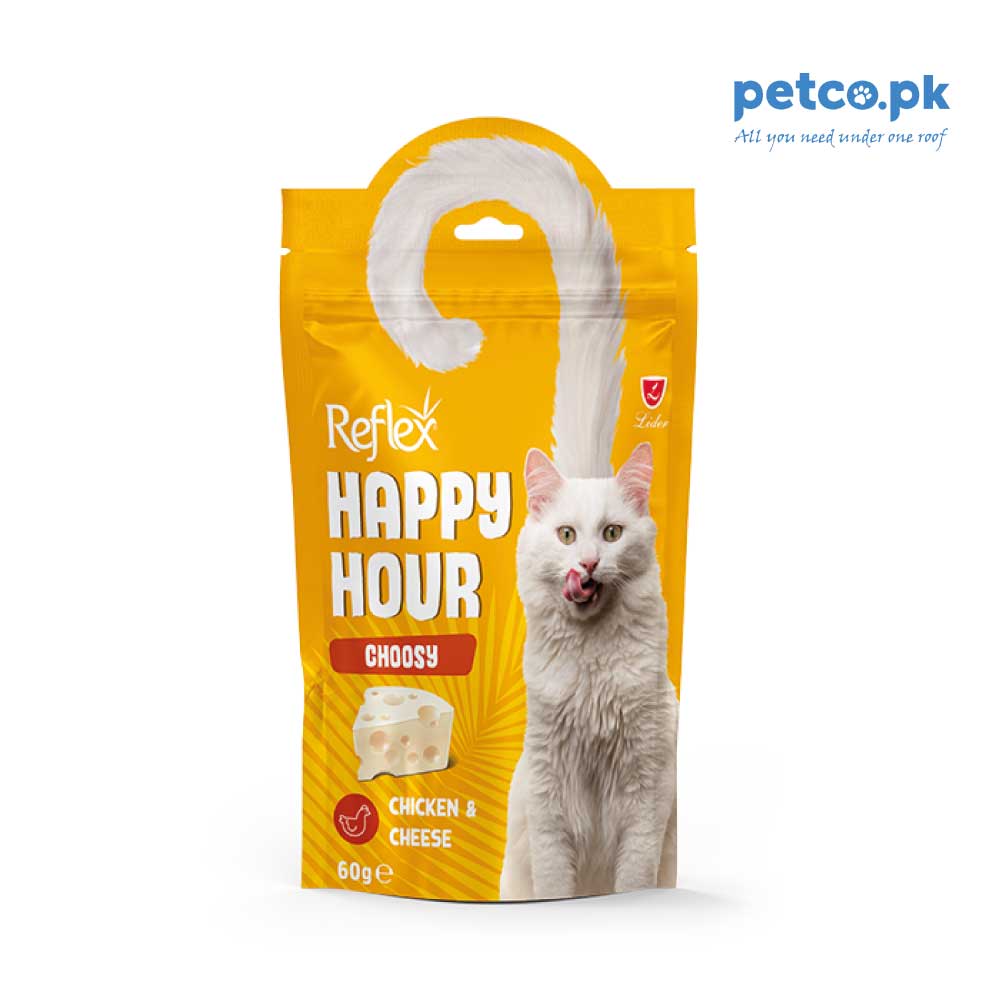 This Variant of Reflex Cat Treat is for All Those Picky Cats who are Choosy in Eating Cat Food. This Happy Hour Cat Treat is Best Complementary Cat Food in Pakistan. Ingredients Involved in Making of this Happy Hour Cat Treats is Chicken and Cheese Loved by All Choosy Cats